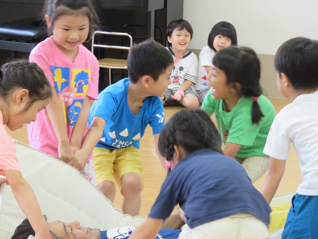 午前中はひげリーダーと一緒にホールで思い切り身体を動かしてあそび・・・
